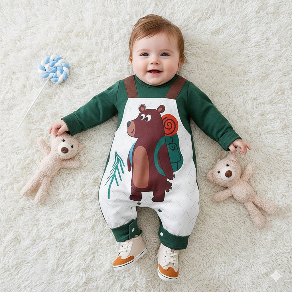It features long sleeves, a footed design, and a secure snap-button closure—providing full-body coverage and making diaper changes quick and easy. Ideal for chilly days indoors or fun outdoor moments, this romper combines comfort and practicality.
