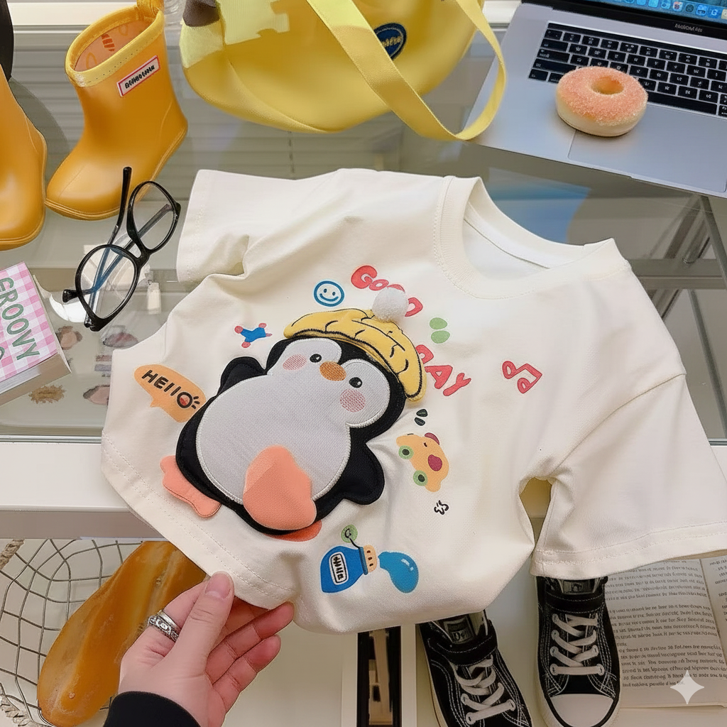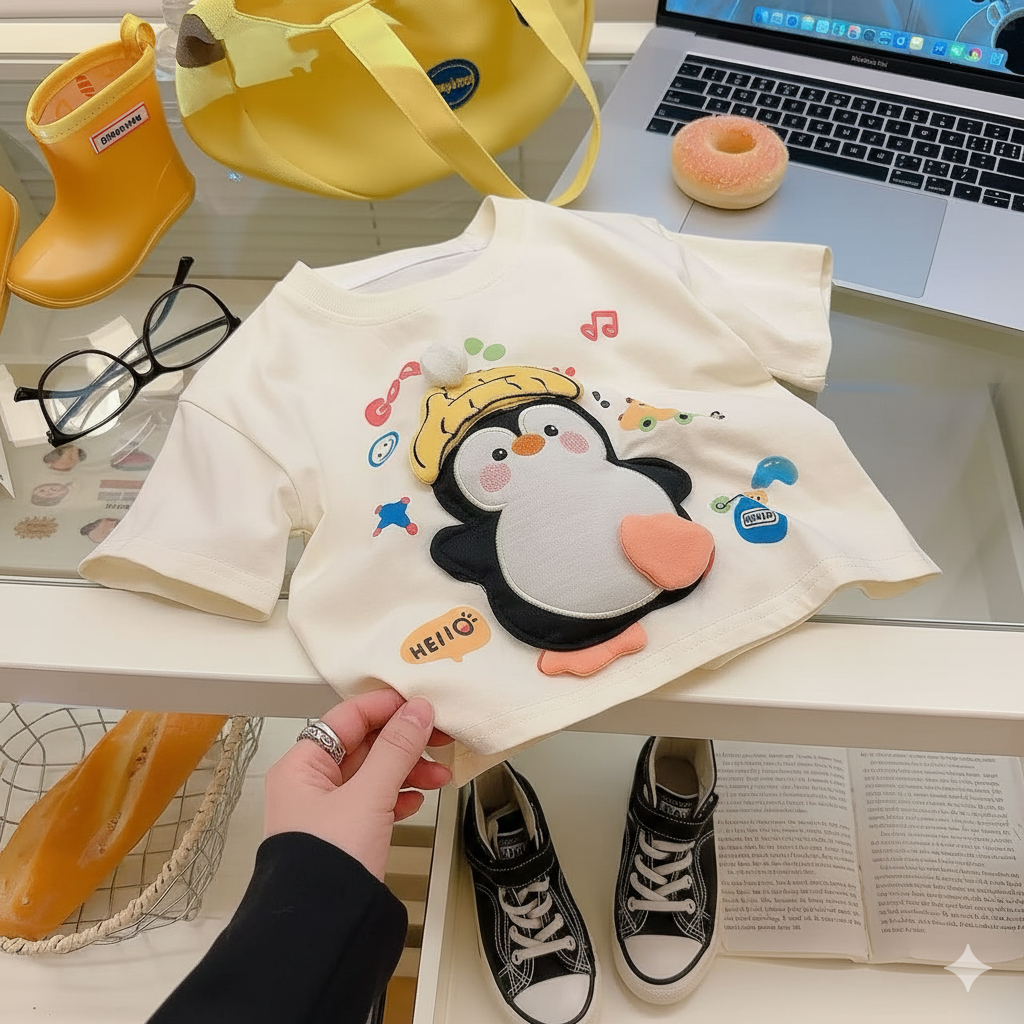 Add a splash of cuteness to your little one’s wardrobe with this adorable penguin-themed baby t-shirt! Designed with comfort and style in mind, this outfit is perfect for everyday wear and summer outings.