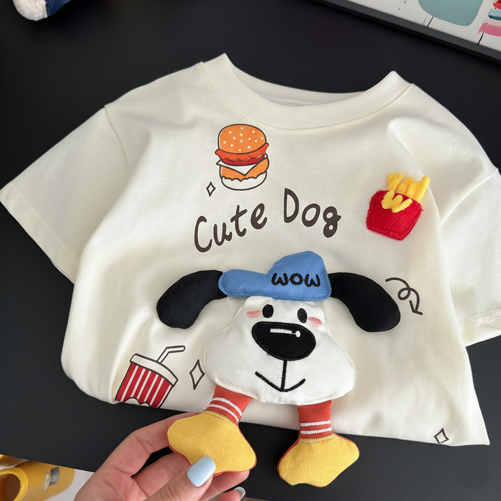 Cute Puppy 3D Applique Baby T-Shirt 🍔🐶