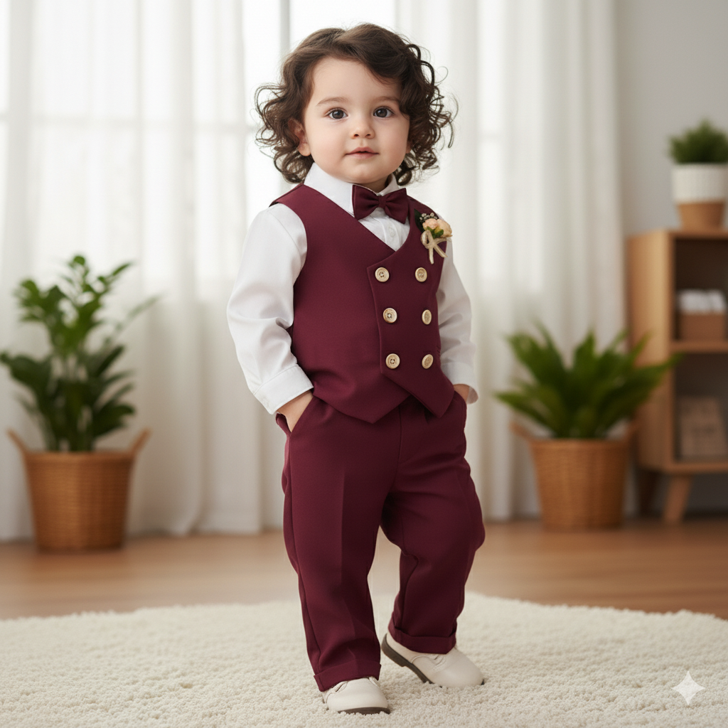 Crafted with soft and comfortable fabric, this suit ensures your child can dance, play, and celebrate without any discomfort. The rich wine color gives a stylish and festive vibe, perfect for birthday parties, weddings, or family gatherings.