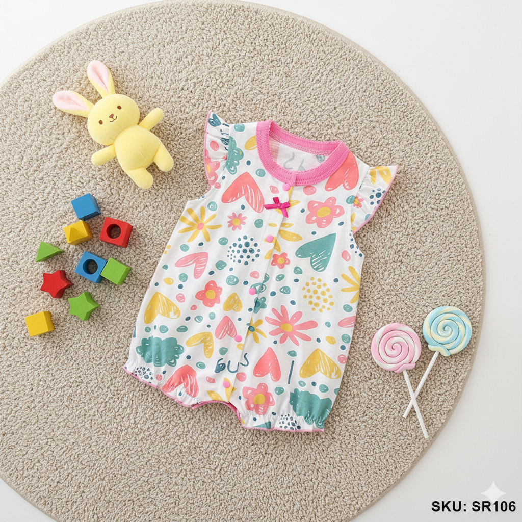 Available in a range of cute, vibrant colors and playful prints, this romper is both stylish and practical, making it the perfect addition to your baby’s summer wardrobe.