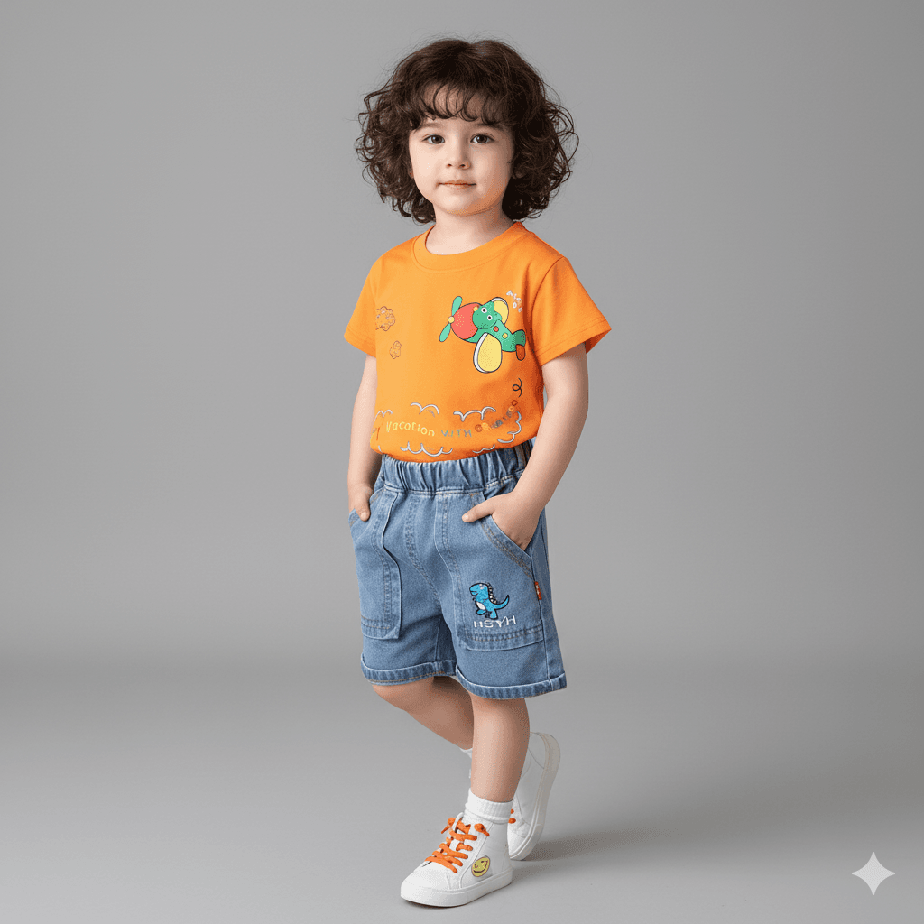 Let your little one shine in this adorable summer T-shirt set! 💙☀