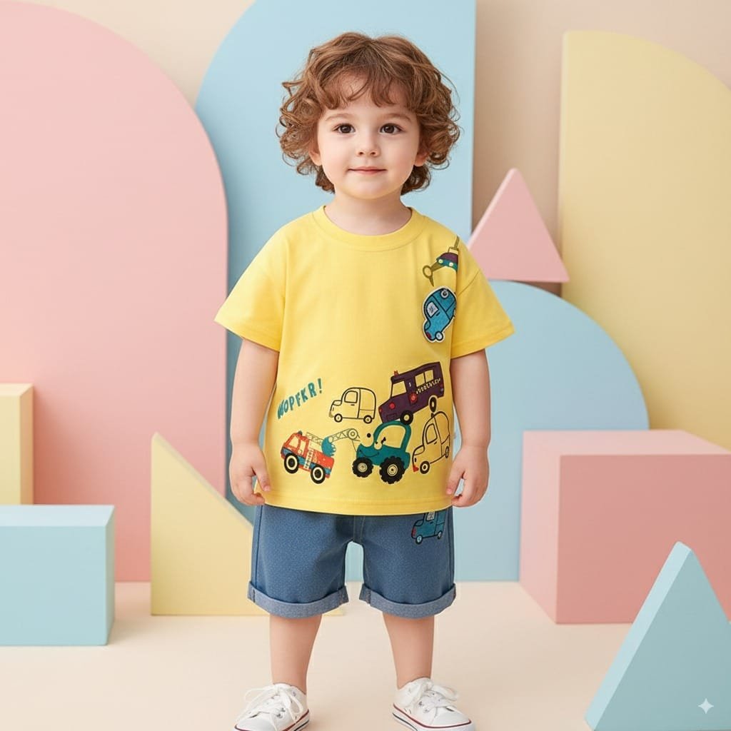 Let your little one shine in this adorable summer T-shirt set! 💙☀
