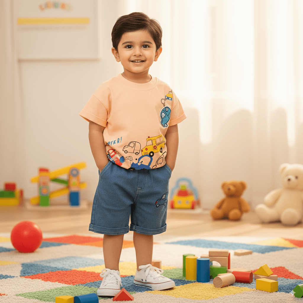 Let your little one shine in this adorable summer T-shirt set! 💙☀