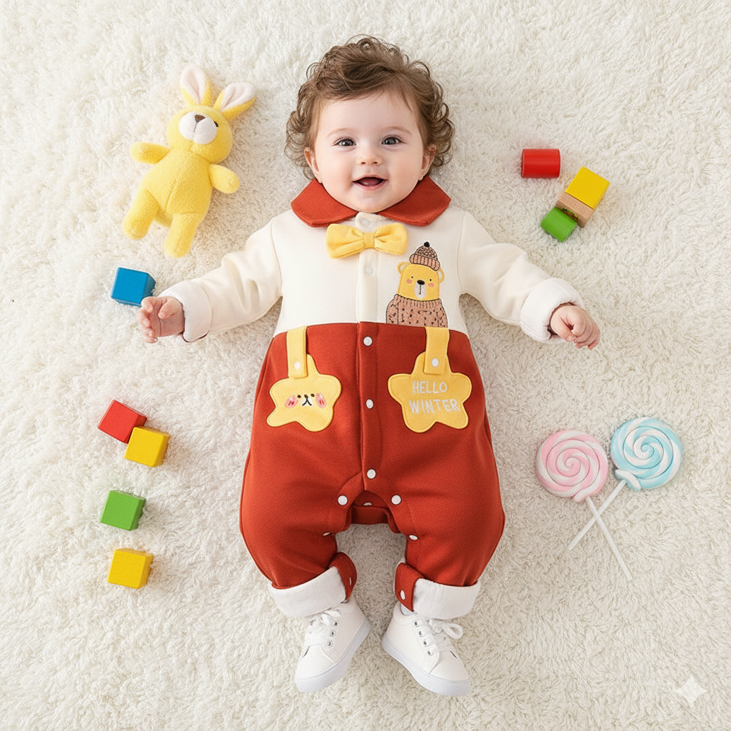 Keep your baby warm and happy all winter long with the Winter Woolen Baby Romper from Baby Blossom Bd. Crafted from thick, high-quality cotton, this romper offers cozy warmth while staying gentle and breathable on your baby’s delicate skin.